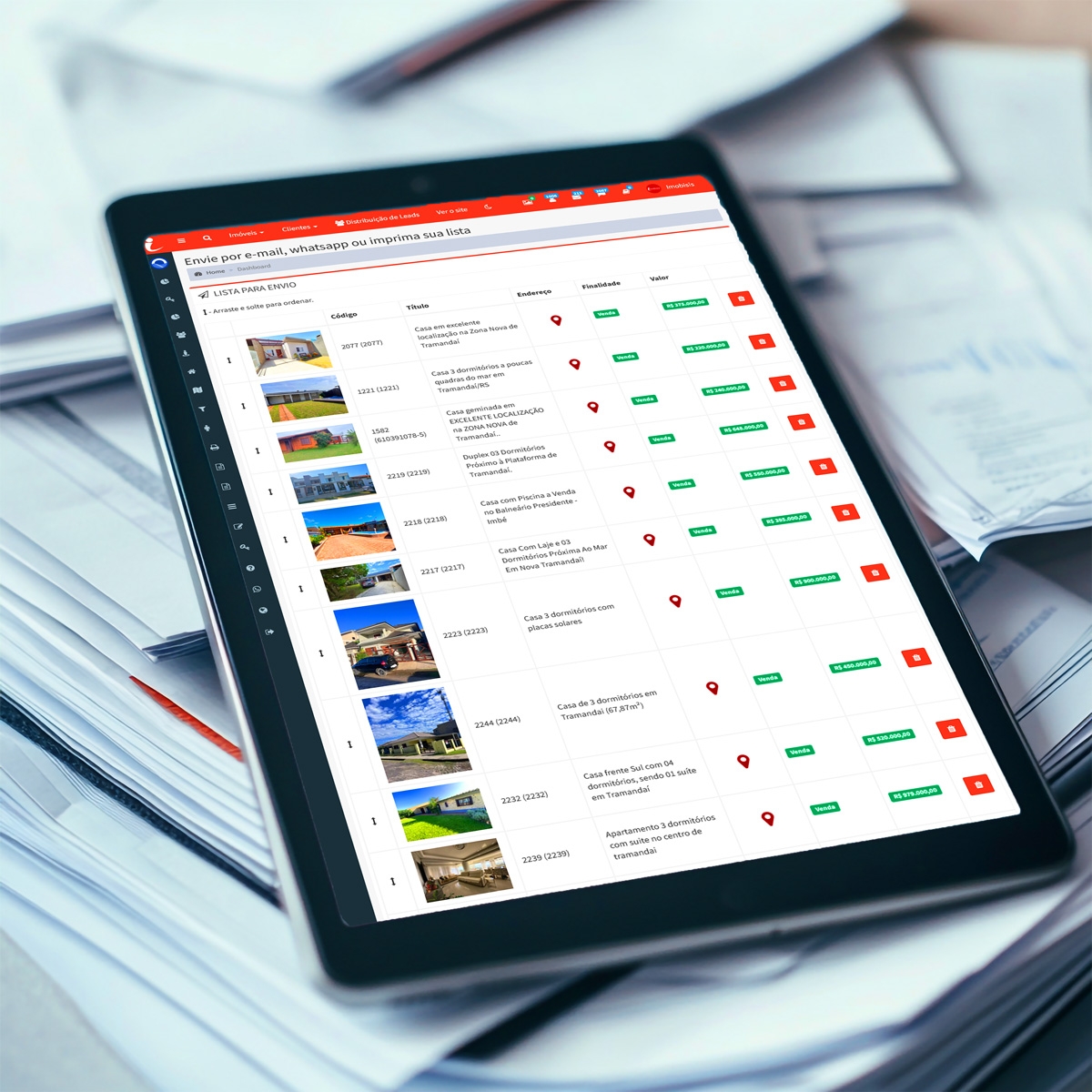 A ferramenta de Lista de Visitas da Imobisis permite que você gere um roteiro completo com todos os imóveis que o cliente vai conhecer no dia, já organizado na melhor ordem de deslocamento. Em poucos cliques você cria uma lista clara, objetiva e pronta para impressão, ideal para deixar o atendimento mais profissional e para facilitar o planejamento do corretor.